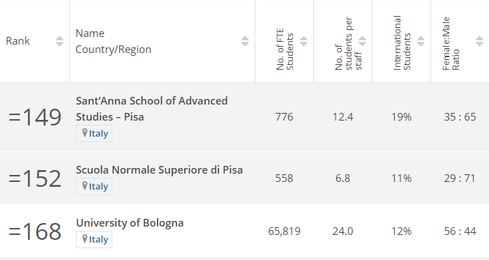 在THE世界大学总排名中,位于世界第168位,意大利第三。